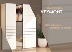 The VEYMONT wardrobes collection offers an elegant and highly attractive design solution, with a distinctive aesthetic that enhances the overall ambiance. Five different models of the VEYMONT wardrobes are introduced, featuring various width dimensions, in an opaque white and artisan oak decor. All models include a mirror on one of the fronts. In their basic form, the VEYMONT wardrobes come with only wardrobe rails for storing clothes, which is why additional sets of shelves are provided in case a different storage arrangement is needed.