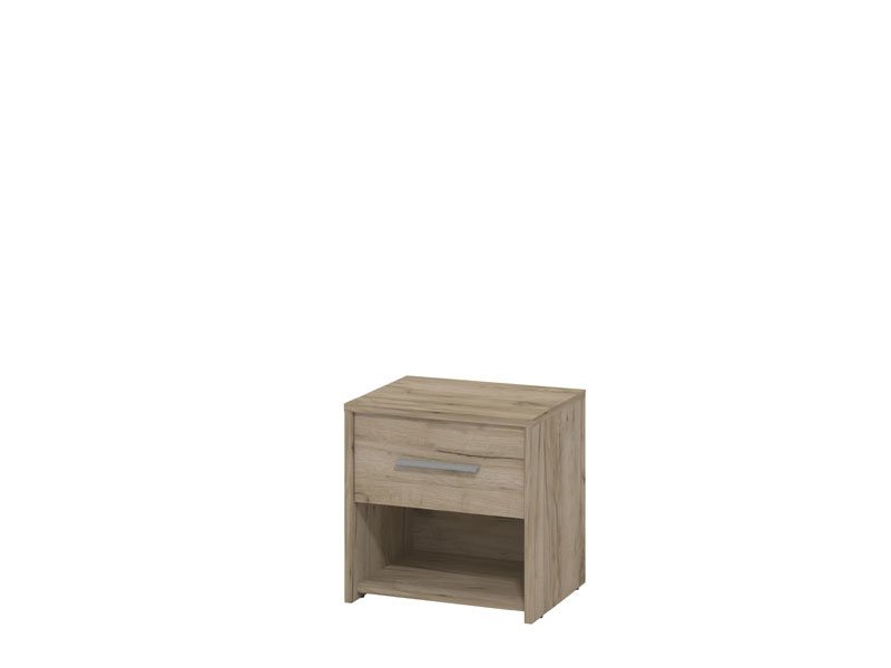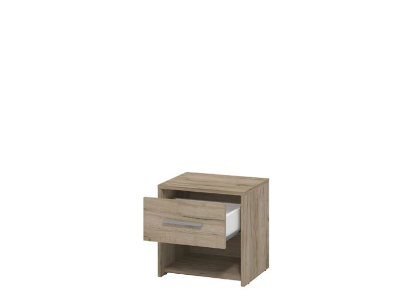 GARONA 2NO1F Bedside Table in grey oak decorative pattern contributes to the functionality and elegance of the entire ambience. One practical drawer and open shelf make the usable space of this bedside table excellently arranged.