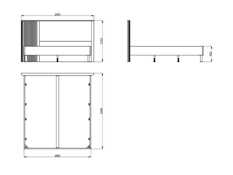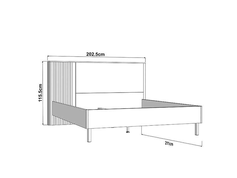 The bed is designed for a mattress dimension of 180 cm x 200 cm and comes without a bed base and mattress, providing the ability to adapt to your own needs. Its functional and tidy form enables easy placement and organization of space around the bed.