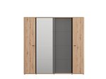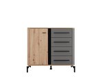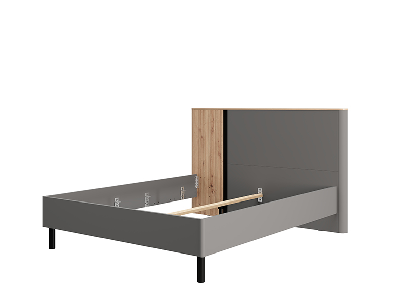 "Double bed SINOP 180, made in a combination of artisan oak decor, artisan oak foil, graphite gray and black wood decor, contributes to the modern and sophisticated look of the bedroom, emphasizing the contrast and clearly defined geometric design line.