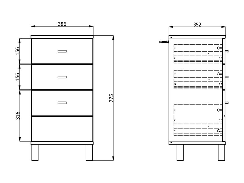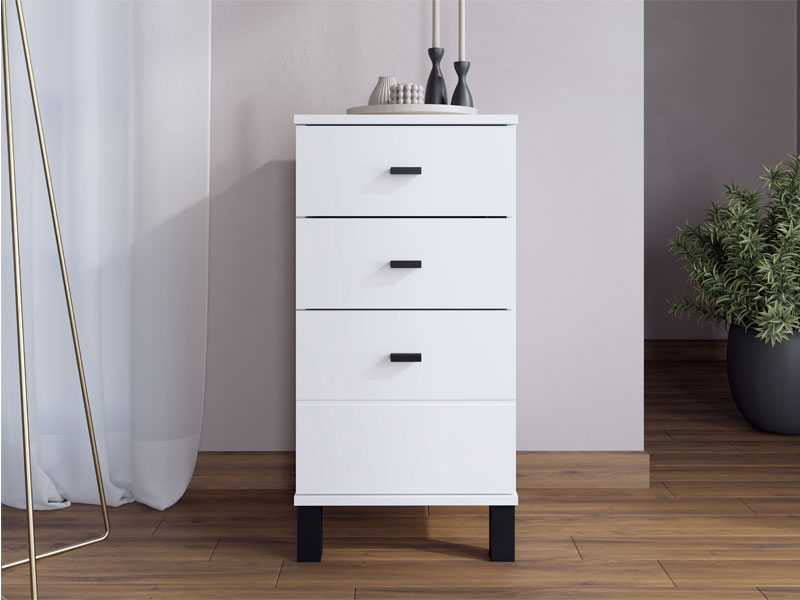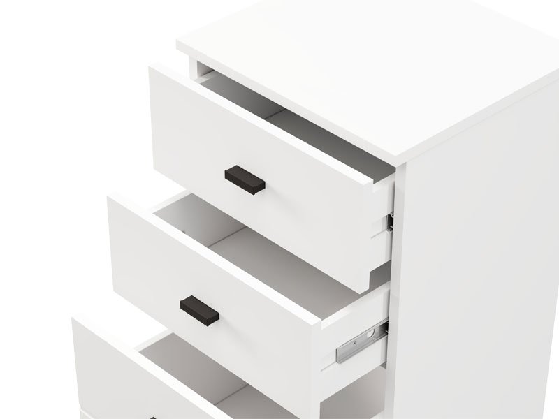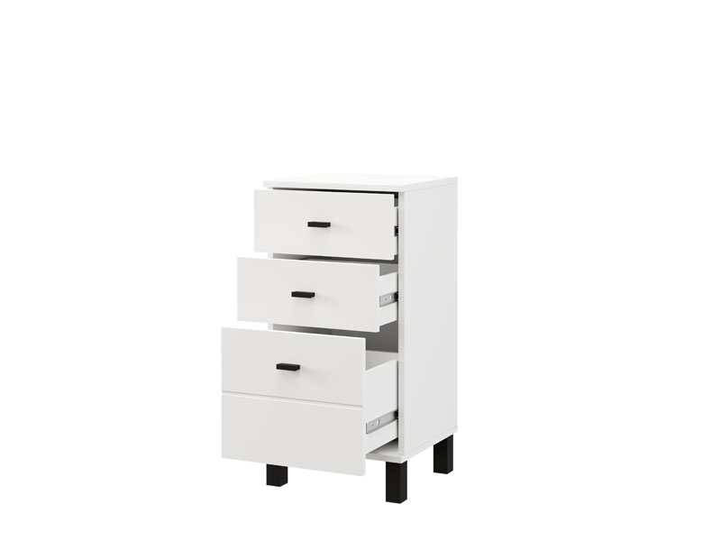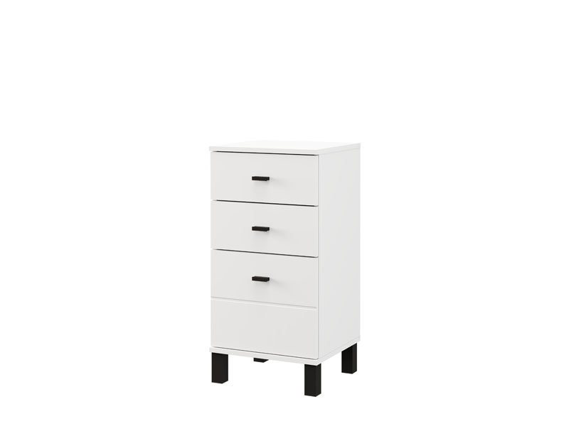 Cabinet ALMOND 38 3F in an opaque white decor is a narrower model of a cabinet that offers a functional usable space through three drawers, one of which is deeper. It is ideal as an additional piece of furniture in the hall, living room, bedroom or children's room.