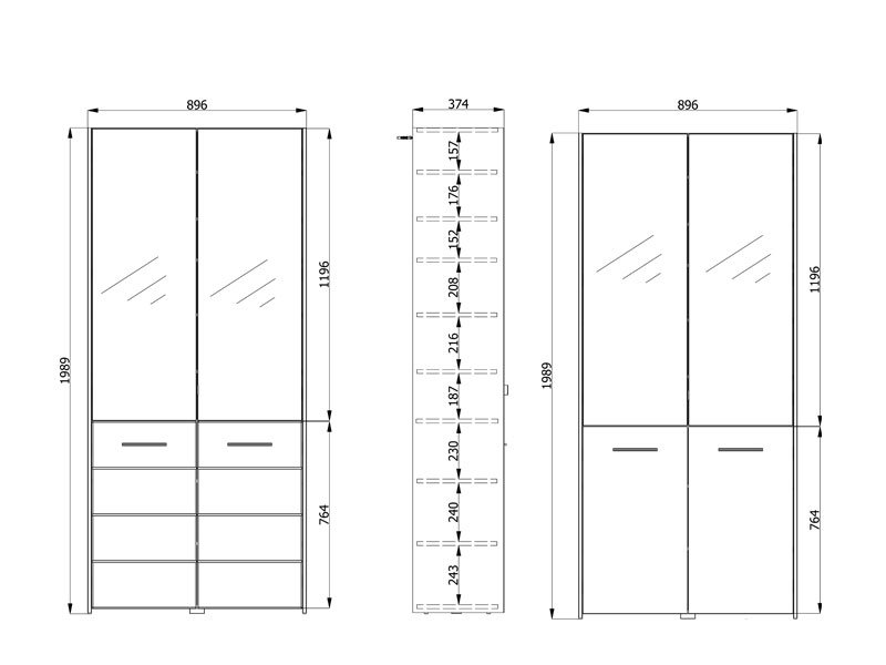 Shoe cabinet MENORICA 2K 2OG, in gray oak decor, is enriched with two practical mirrors in the upper part of the element. Inside, there are closed shelves for storing shoes, which provide the possibility of rational organization of the hall unit.