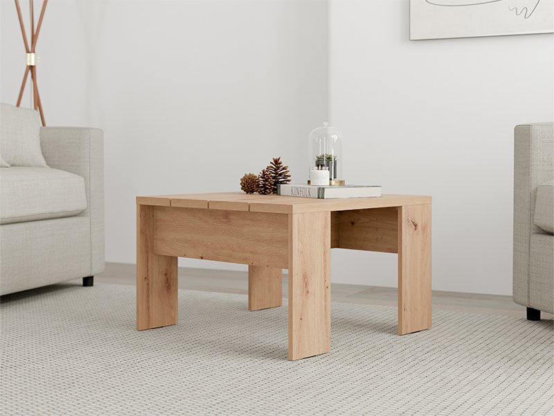 Club table Montese 67x67, in artisan oak decor, brings the warmth of natural wood and a pleasant atmosphere to the ambience of every living room. Its practical dimensions and clean lines make it an ideal choice for modern and minimalist interiors. Warm wood decor blends easily with a variety of furniture styles, while simple design adds to the natural, harmonious, and modern look of the space.