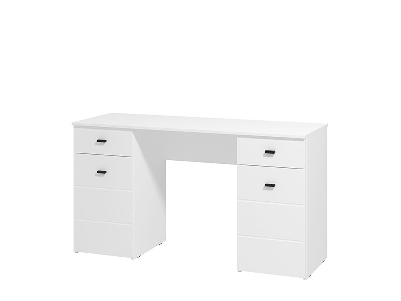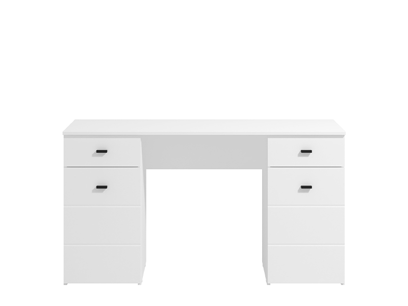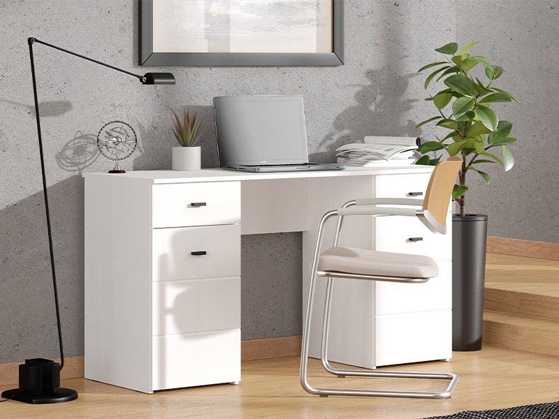 The computer desk KEPLER 2F2V, in an opaque white decor, features a clear and functional form. Below the worktop, on the left and right, the use area consists of a closed partition and a drawer, which enable a clear and practical disposal. Thanks to its compact dimensions and neutral aesthetics, the KEPLER 2F2V desk is an indispensable element for a functional and transparent arrangement of the workspace.