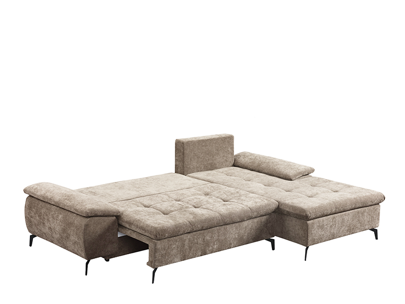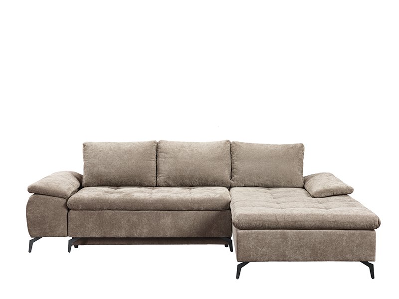 The exact name of the pattern is: textile WIND 11 light brown, corner right. Corner sofa bed ANDI is characterized by modern design and spaciousness, ideal for a modern living area. With a practical backrest tilting system, it is easily transformed into a bed with a sleeping surface measuring 134x200 cm. It is made of a sponge, providing a good level of comfort in everyday use. Corner sofa bed also has a storage box, convenient for storing linens and other items.