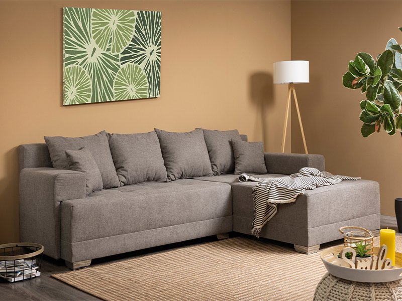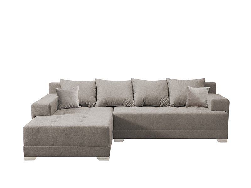 The exact name of the design: armrest/seat/backrest/large pillow/small pillow fabric Primo 80 beige. Corner sofa bed GALAXY is designed for complete living room furnishing and its aesthetic fits into modern designs of interior design. It has the possibility of converting into a bed of 215x125CM by the mechanism of lowering the backrest. Corner sofa bed model GALAXY has a storage space for linen and there is a possibility to choose the angle during installation.