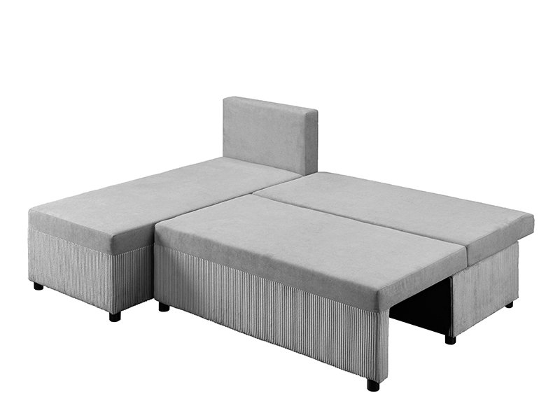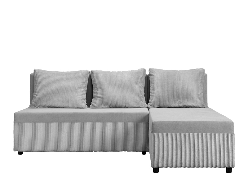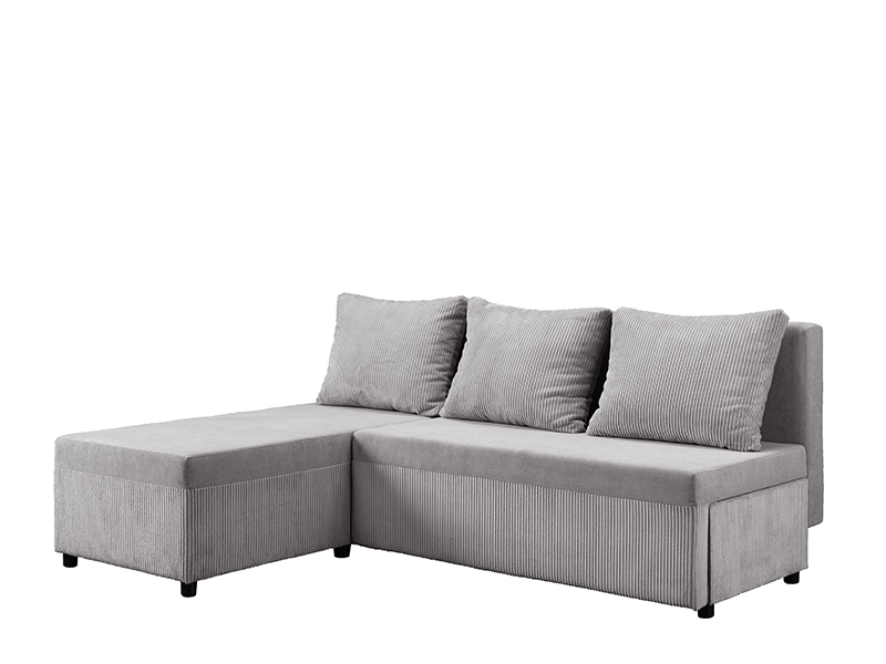 The exact name of the pattern is: seat/backrest textile SORO 90 gray /textile LINCOLN 86 light gray, universal corner. Corner sofa bed LUELLA combines modern design and practicality, ideal for smaller living rooms. With a practical backrest tilting system, it is easily transformed into a bed with a sleeping surface measuring 115x200 cm. It is made of a sponge, providing a good level of comfort in everyday use. Corner sofa bed also has a storage box, convenient for storing linens and other items.