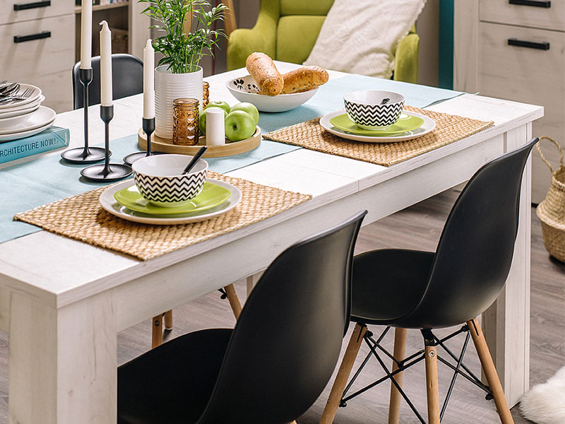 Dining table OSCAR TS 160x90 can be easily combined with other furniture elements in the dining room. This design has the possibility for extending the worktop up to the dimensions of 200,5x90,5cm.