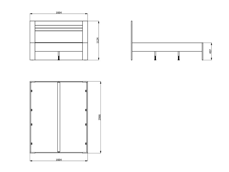 The bed is designed without a bed base and mattress, designed for a mattress measuring 160 × 200 cm, and the usable space can be additionally organized through one drawer, a set of two drawers or a set of several drawers, according to individual needs.