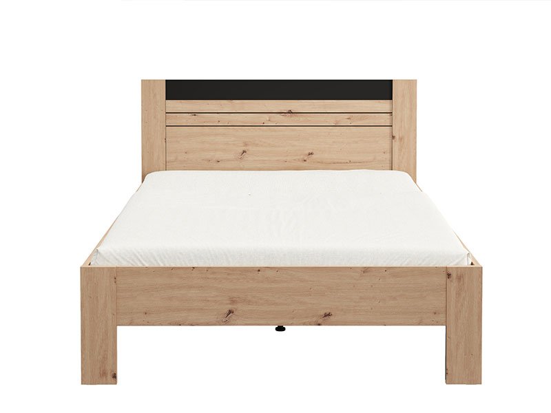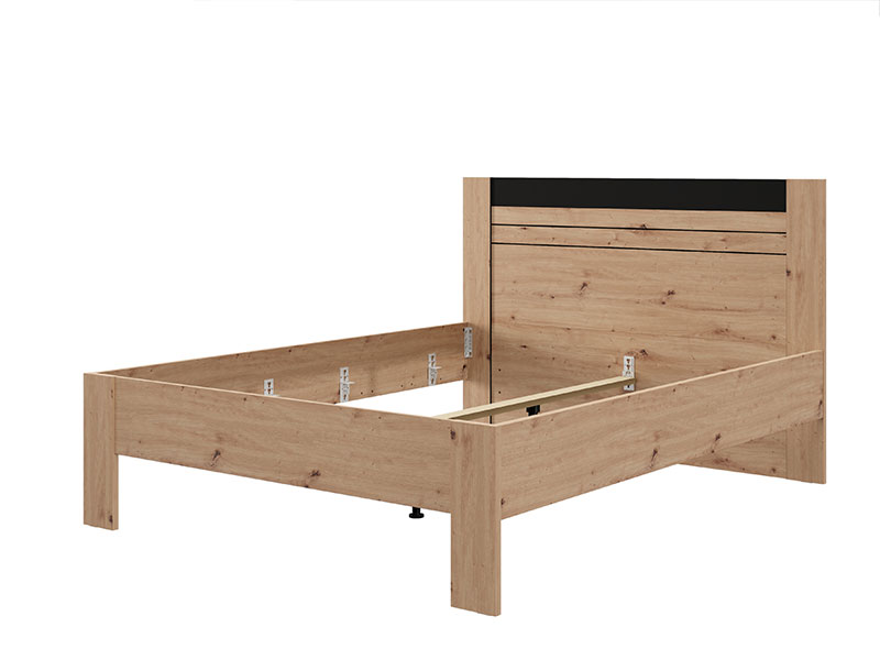 Double bed BITINIA 160, made in a combination of artisan oak and black wood decor, contributes to the warm and modern look of the bedroom, providing a stable and functional basis for rest.