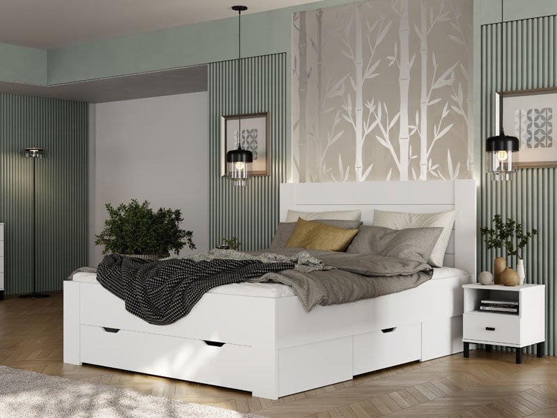 The bed is designed without a bed base and mattress, designed for a mattress measuring 160 × 200 cm, and the usable space can be additionally subsequently organized through one drawer, a set of two drawers or a set of three drawers, according to individual needs.