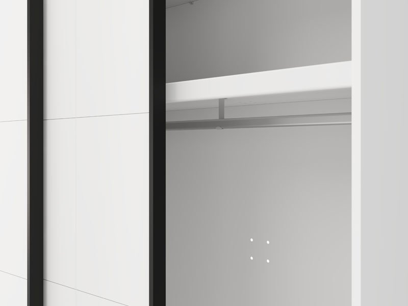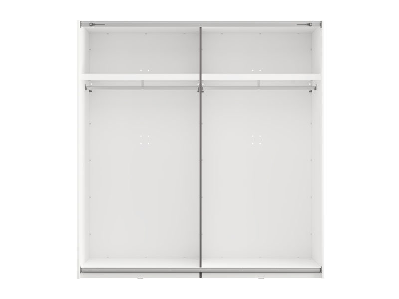 Wardrobe SALAMIS 200 OG h205, made in an elegant opaque white decor, contributes to the calm and sophisticated look of the bedroom. In its basic form, the usable space of the wardrobe consists of two wardrobe rails, which enable a tidy and practical storage of the wardrobe.