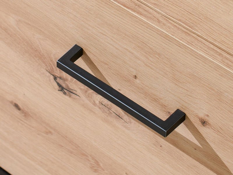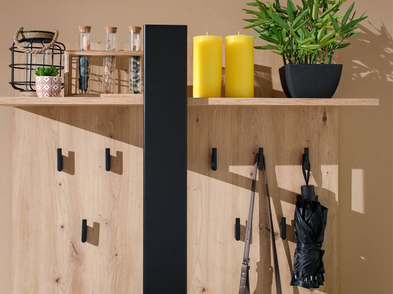 Hall unit CAPITELLO, in a combination of artisan oak, black colour and black matte foil, will make the first contact with the interior of any home effective and friendly. The usable space consists of a closed and an open part for storing shoes, and enables you to achieve functionally organized space.