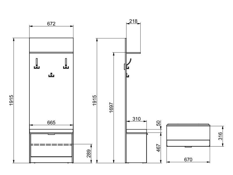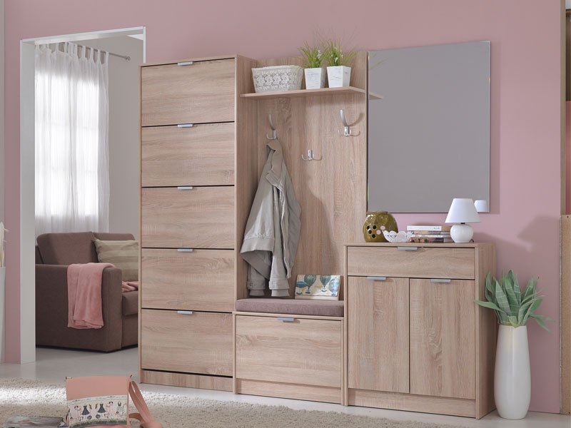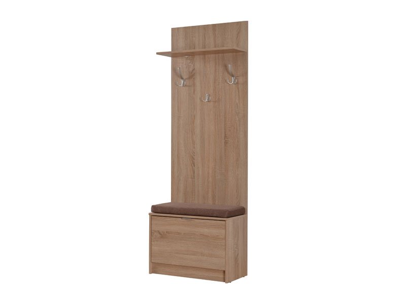 The hall unit model FLAMENCO will contribute to the complete furnishing of the hallway. It has three hangers as well as a closed double shelf for footwear. If the dimensions of the room allow it, and the needs demand it, the hall unit model FLAMENCO can be combined with shoe cabinets of various sizes.