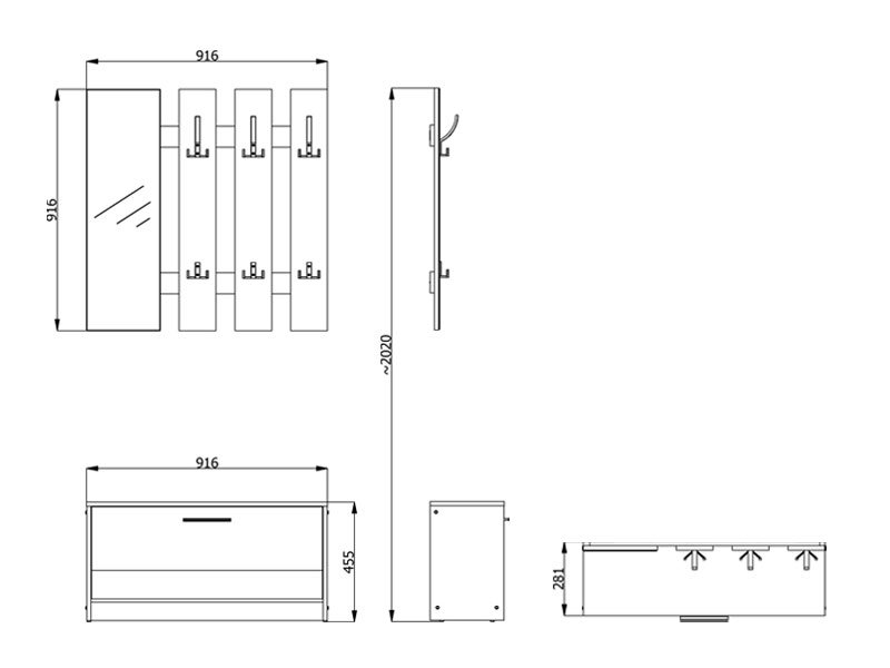 The RIMINI hall unit, decorated in artisan oak and grey, consists of two practical parts that will help you to adequately store your favorite shoes and clothes.
