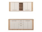 The BELFORT 60A kitchen element, intended for a built-in exhaust hood, is a practical solution for efficient kitchen space utilization. The unique modern design in the combination of cashmere finish, artisan oak foil, and cashmere matte foil meets aesthetic requirements for any environment. This kitchen element integrates seamlessly with the BELFORT 200 kitchen.