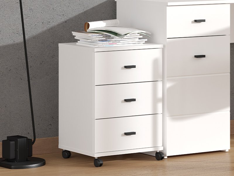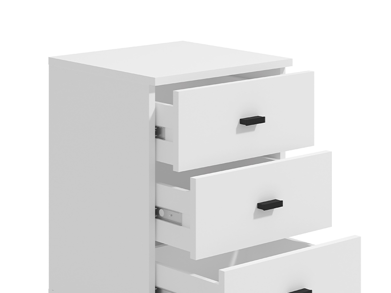 Chest of drawers ALMOND 3F, in an opaque white decor, features a simple and functional design. It consists of three drawers that allow you to store things clearly and conveniently, and thanks to the wheels, it is easy to move around the space. The ALMOND 3F chest of drawers is a handy accessory for the study or children's room.