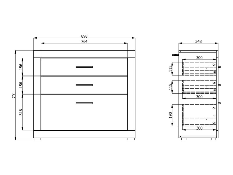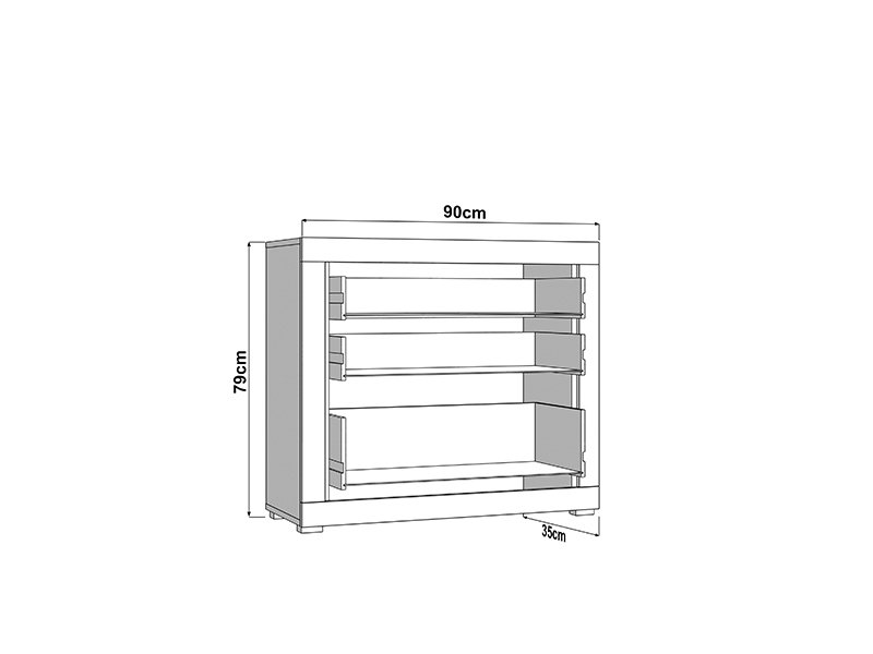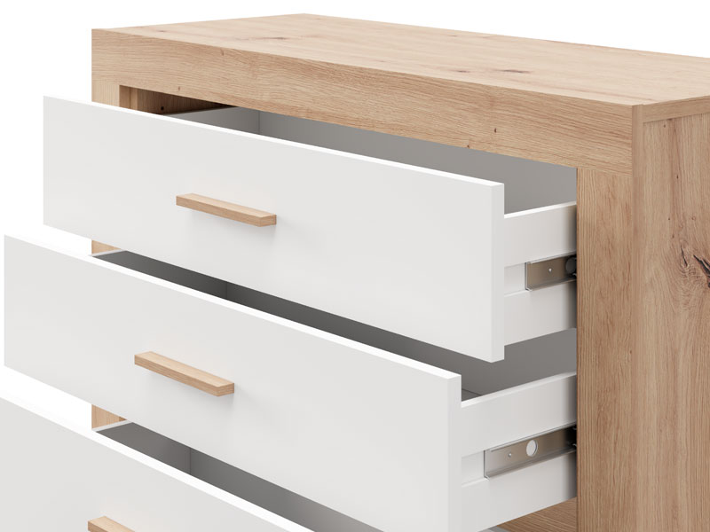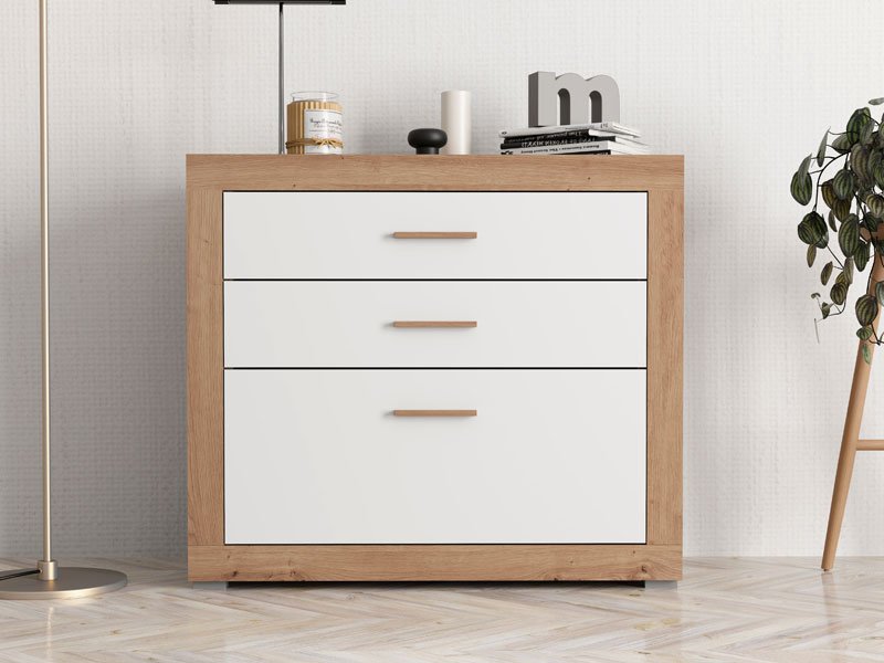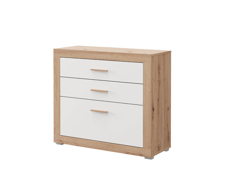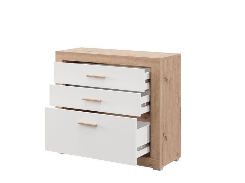 The usable space of the cabinet consists of three spacious drawers – two shallower and one deeper, which allow for a tidy and practical disposal of the wardrobe and small items.