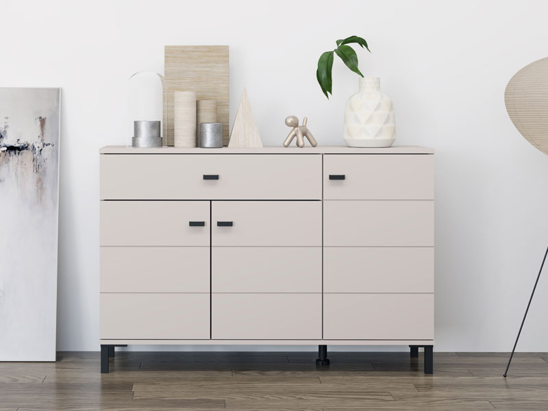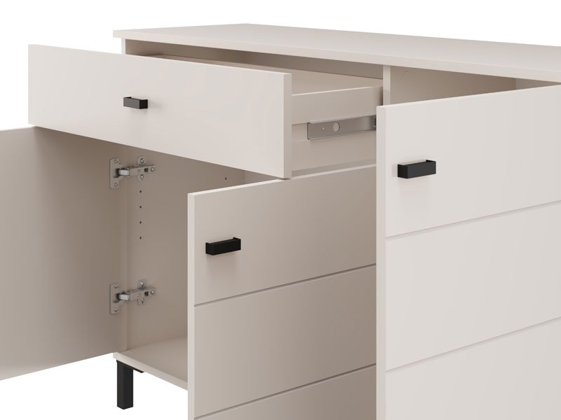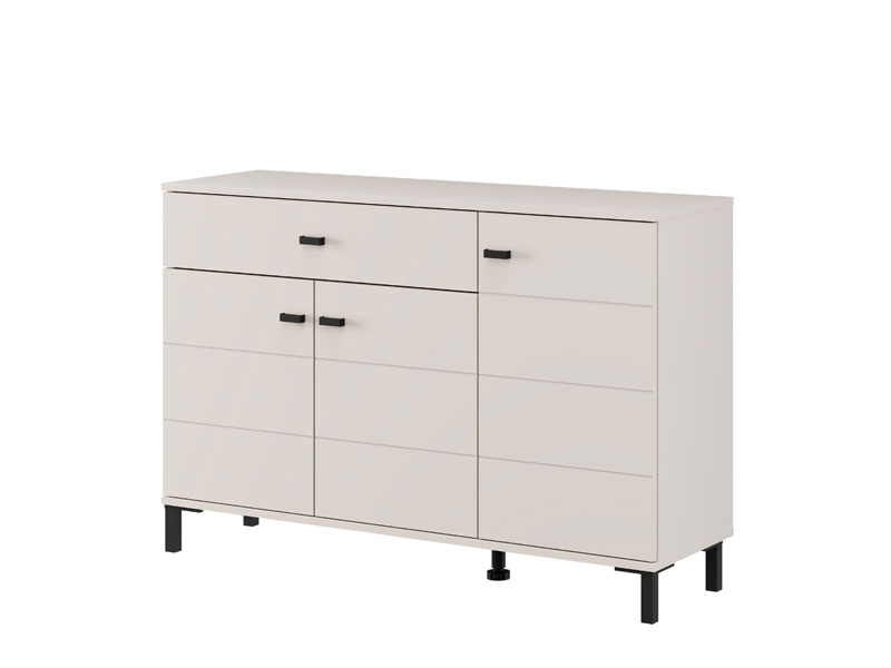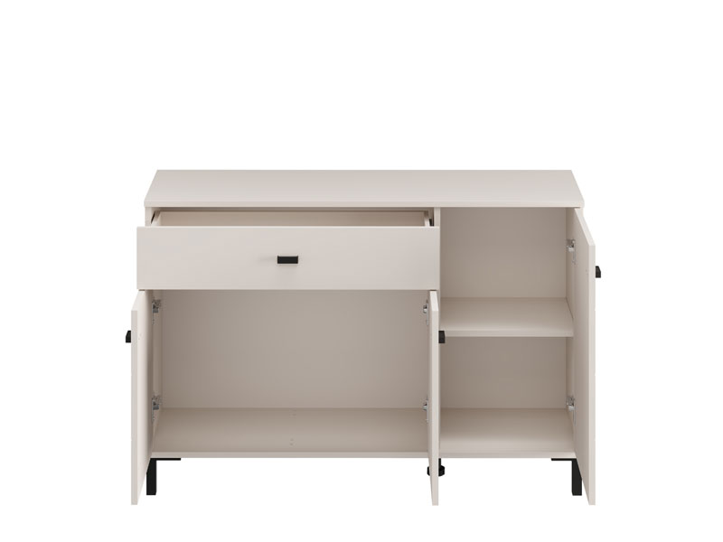 Cabinet SALAMIS 115 3K1F3V, made in an elegant cashmere decor, contributes to the calm and modern look of the bedroom, while providing a well-viewed and functional storage space. The usable