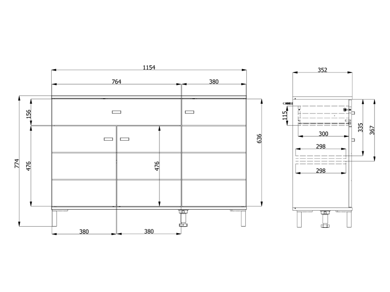 space of the cabinet consists of one double-winged and one single-winged closed partition, as well as a spacious drawer, which together enable the practical organization of the wardrobe and