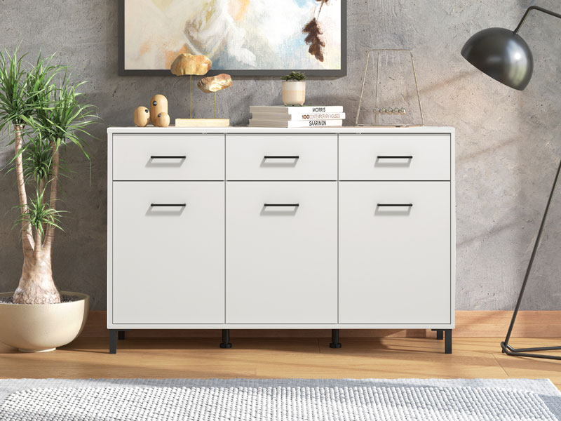 Cabinet VIENNE 3K3F, in opaque white decor, is a functional piece of furniture that is needed in every home environment.