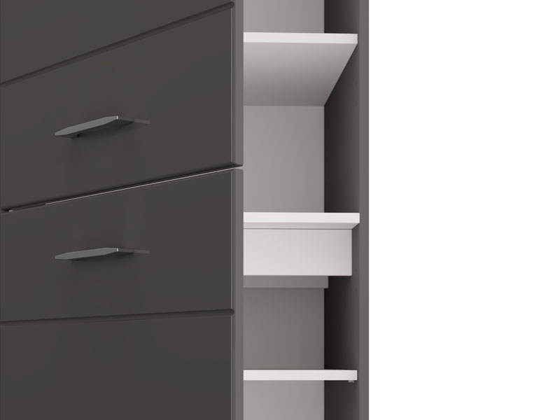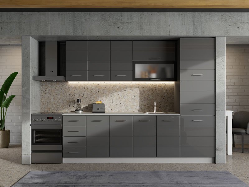 Kitchen element UNA BD 60 UR, in a sophisticated combination of graphite gray decor and gray high gloss foil, is intended for disposal or installation of kitchen equipment and represents a practical solution for the optimal organization of the kitchen space. Clean design, with clear lines and neutral tones, enables harmonious integration with the kitchen UNA 200, contributing to the functionality and elegant, neat appearance of the entire space.
