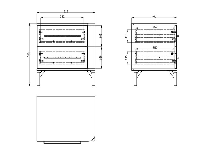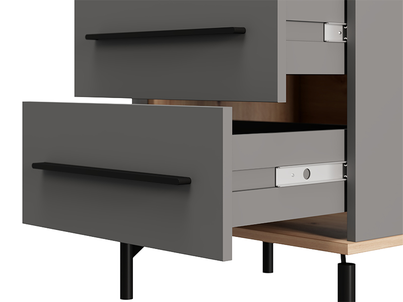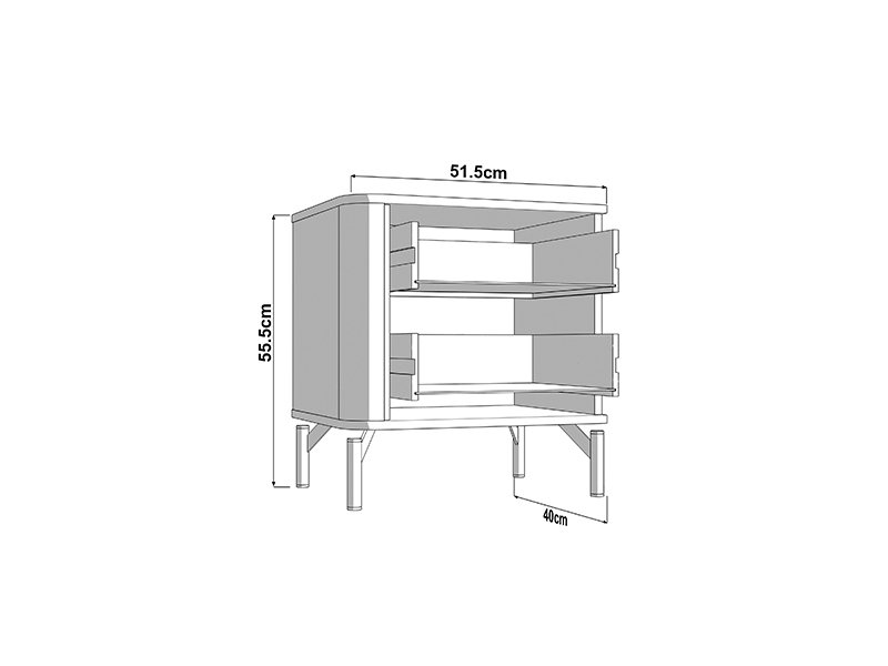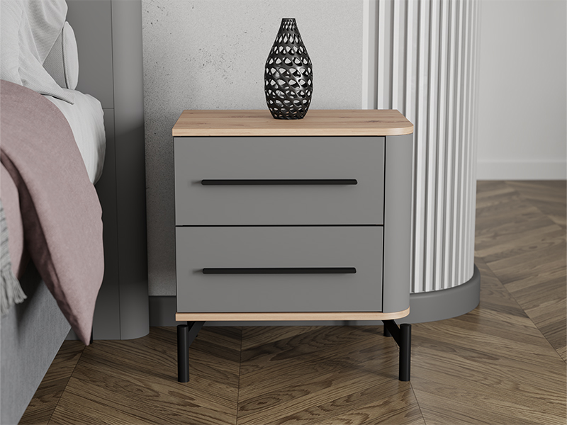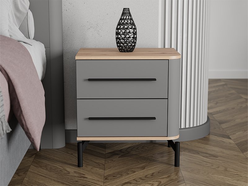 The bedside table usable space consists of two drawers, which enable tidy and practical storage of small items and wardrobe, providing additional functionality to the space around the bed.