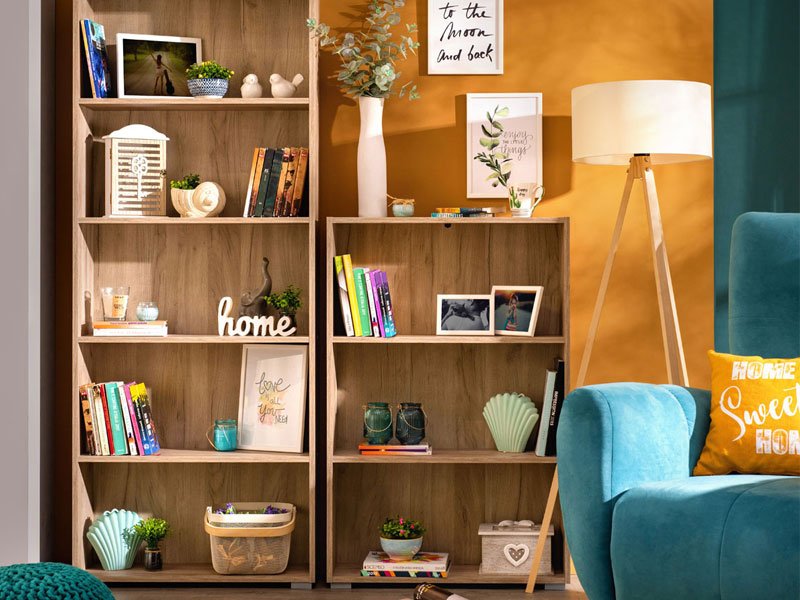 The functional model of the open shelf TOMAR 3, in artian oak decor, contains three special shelves and will very effectively fit into various types of interiors.