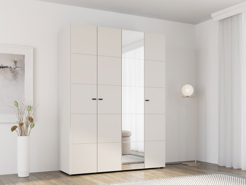 Wardrobe SALAMIS 4K1O h207, made in an elegant cashmere decor, contributes to the calm and modern look of the bedroom, while the mirror on one front further improves functionality and visually expands the space.