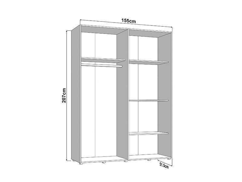 Wardrobe SALAMIS 200 OG h205 offers the possibility of installing additional shelves for better space organization, as well as the option of a sliding mechanism retarder for quiet and comfortable use. Also, there is the possibility of adding lighting, which improves the functionality and visual experience of the wardrobe. Wardrobe SALAMIS 200 OG h205 is part of the eponymous bedroom design collection SALAMIS, of a modern and clean design form.