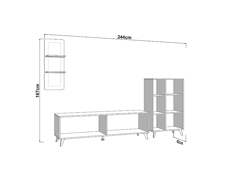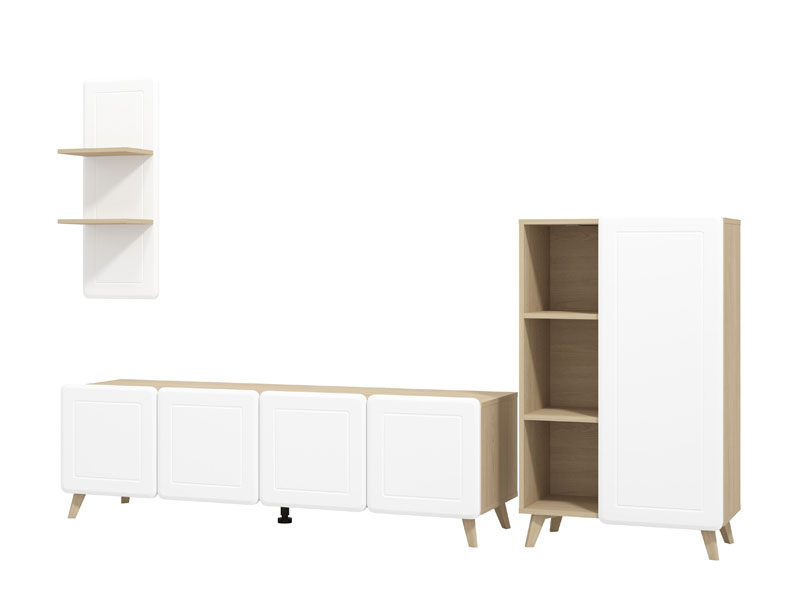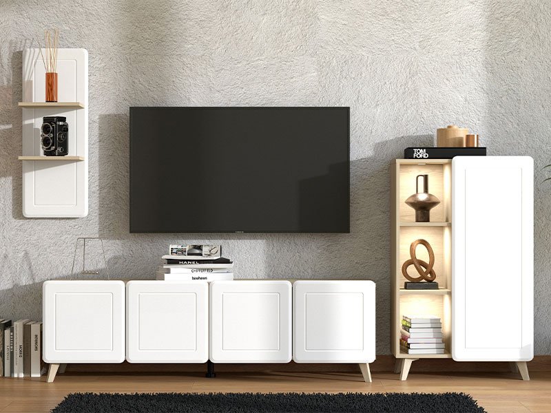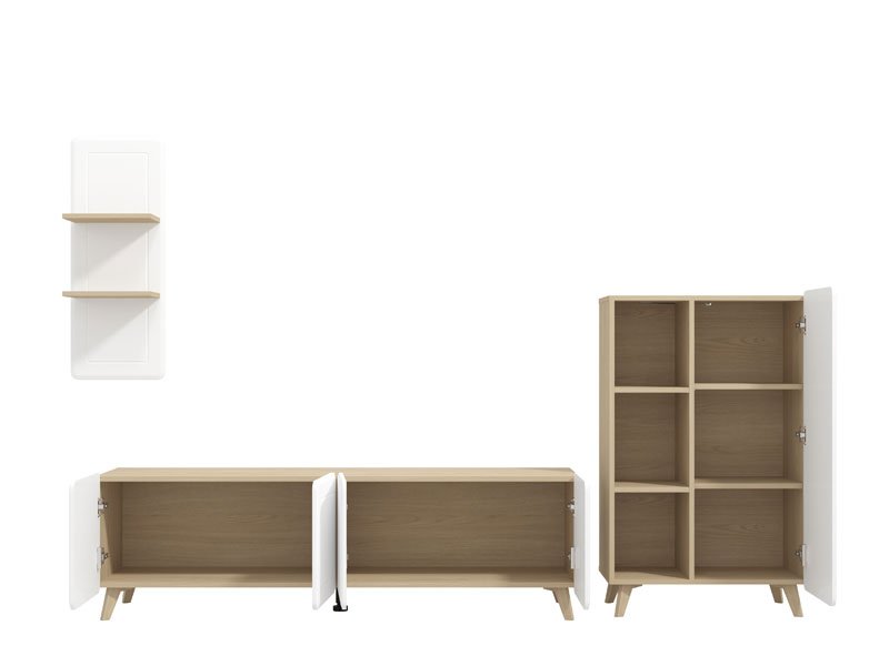 Entertainment center ANDROS, in combination of artisan oak decor and artisan oak with stripes, is a modern and functional solution for decorating the living room. Compact and clean in design, the entertainment center ANDROS allows you to conveniently equip the space thanks to open and closed storage shelves, as well as the surface intended for the TV up to 50". Thanks to the well-designed layout of the usable space, the entertainment center easily fits into modern home environments.