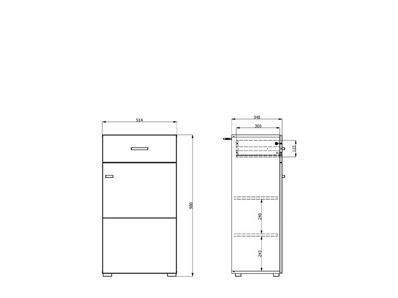 The RATHLIN 1K1F1V hall unit element, in cashmere finish, features a practical closed section for storing shoes consisting of a section with shelves and a drawer. It can be combined with other elements from the RATHLIN hall unit collection, perfectly completing the interior design of your home’s entrance.