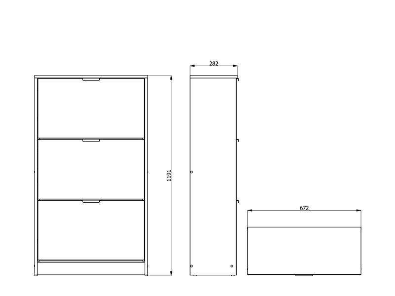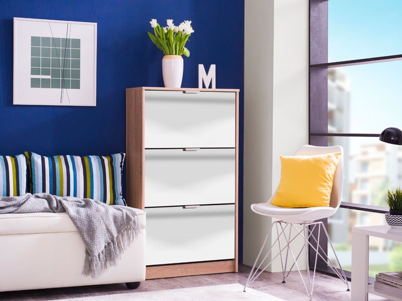 Shoe cabinet HUGO 23 OG, with its combination of the mirrors and corpus with Sonoma oak pattern, has three segments in which you can keep your seasonal footwear, and thanks to its dimensions and two sets of shelves, it is a very effective functional solution for decorating your hallway of more modest dimensions.