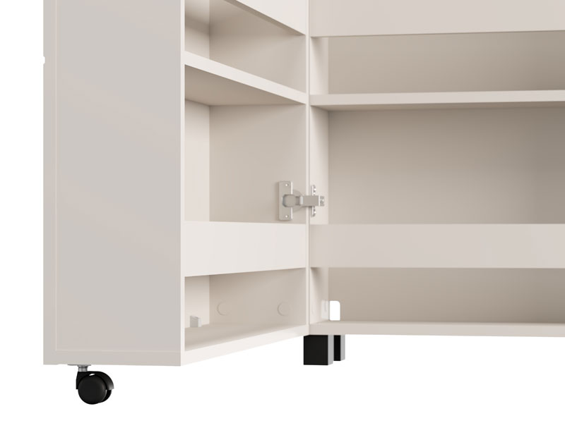 Shoe cabinet ISLAY 91 2K h113, in cashmere decor with hotstamping stripes on the front, is a practical and elegant solution for the hallway. The interior of this single-winged shoe cabinet like a cabinet with closed shelves provides a neat and functional organization of footwear.
