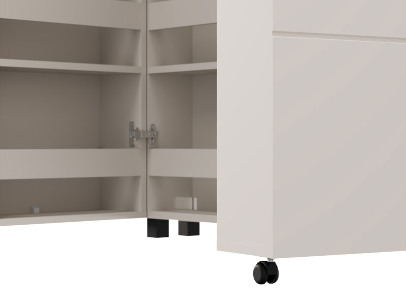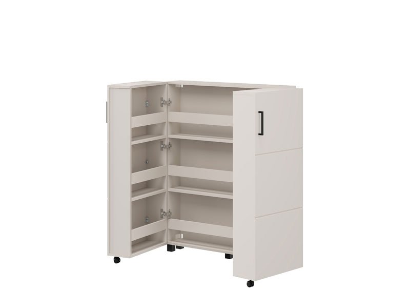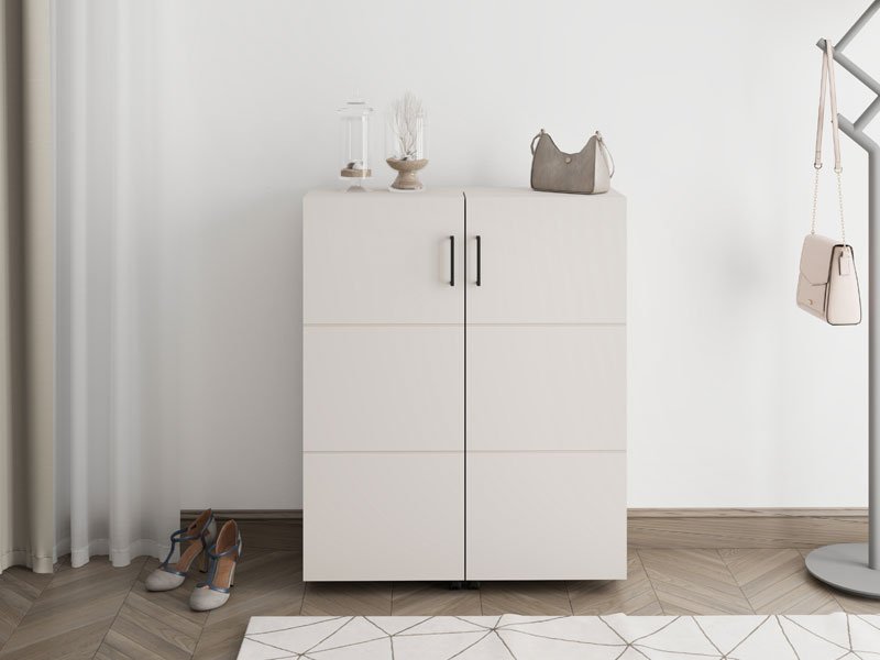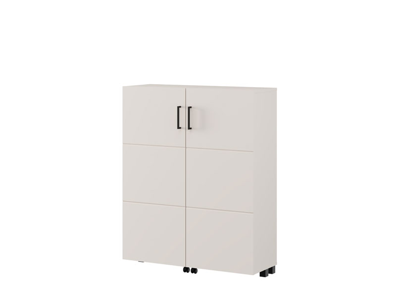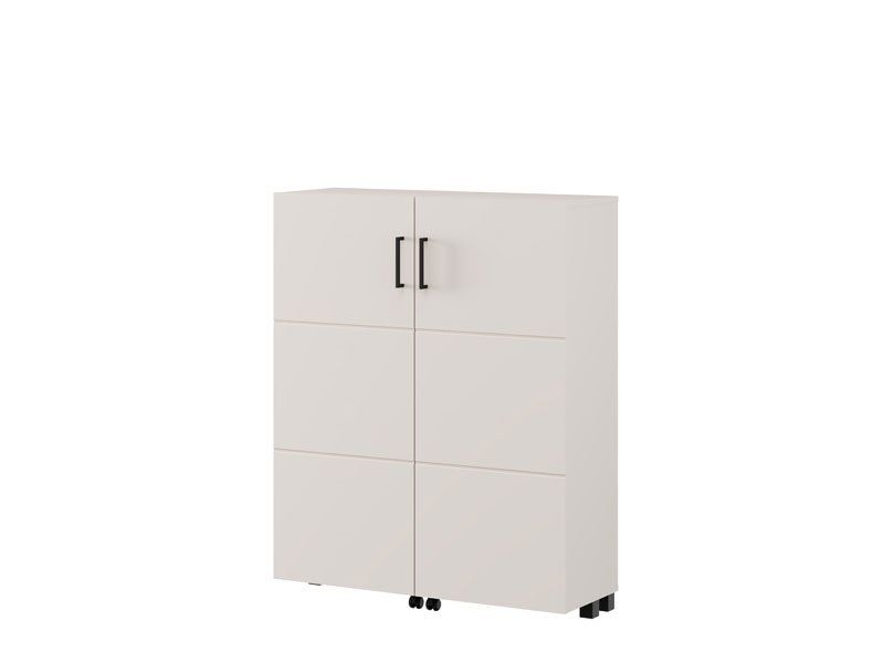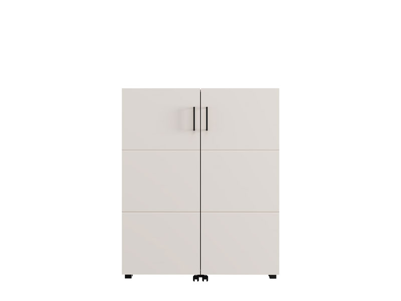 Shoe cabinet ISLAY 91 2K h113, in cashmere decor with hotstamping stripes on the front, is a practical and elegant solution for the hallway. The interior of this two-winged shoe cabinet, like a cabinet with closed shelves, provides a neat and functional organization of footwear.