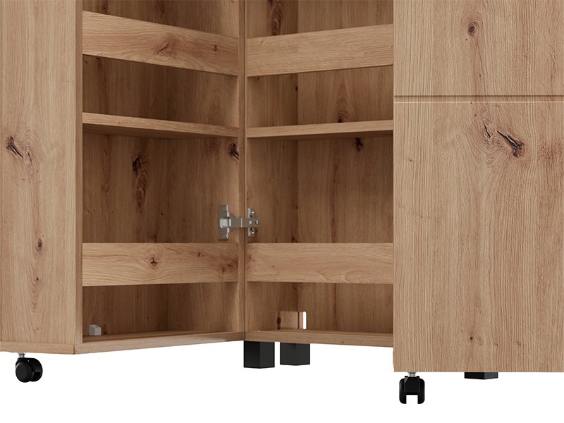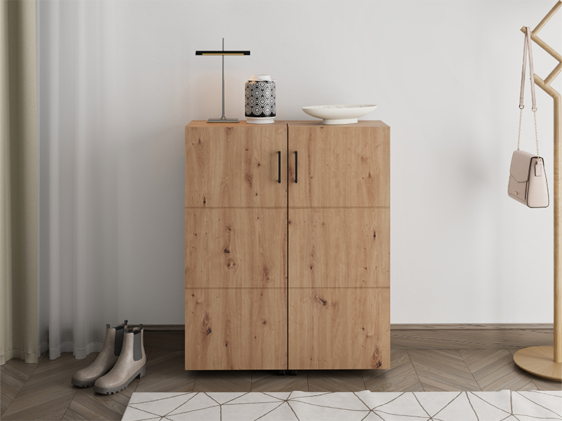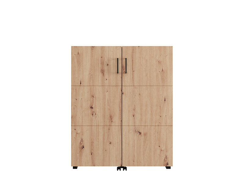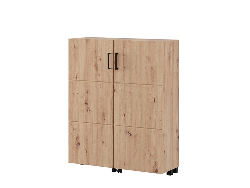 Shoe cabinet ISLAY 91 2K h113, in the decor of artisan oak with hotstamping stripes on the front, is a practical and elegant solution for the hallway. The interior of this two-winged shoe cabinet, like a cabinet with closed shelves, provides a neat and functional organization of footwear.