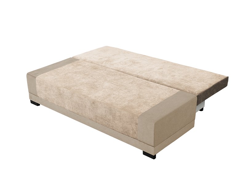 The exact name of the pattern is: RUN AGAIN 06 beige /SORO 21 beige. The QUATRO sofa is ideal for furnishing spaces of different dimensions and purposes. This bed model has the possibility of converting it into a 198x150 surface bed by folding the backrest. The functionality of this model is also contributed by the bed linen storage box.
