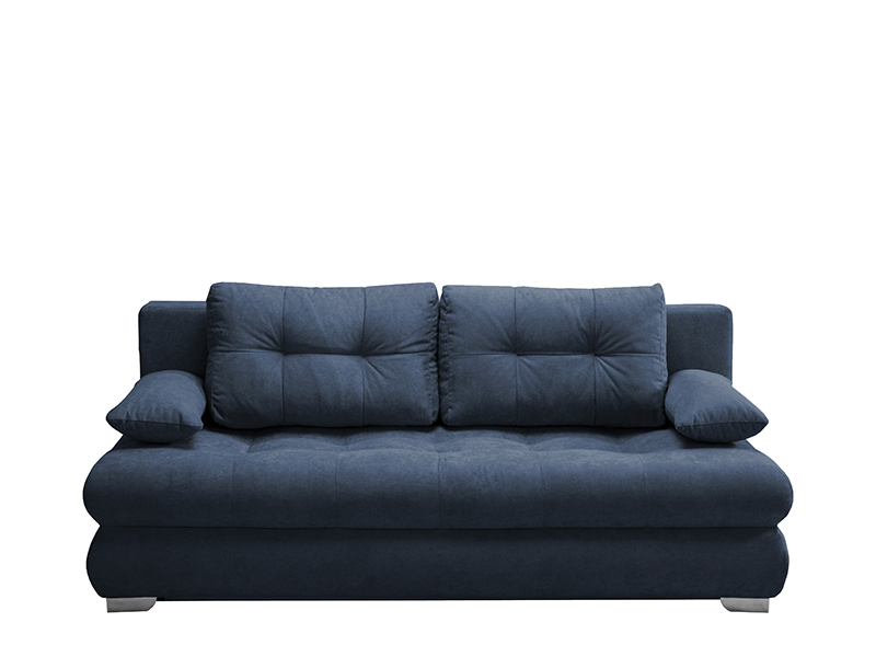 The exact name of the pattern is: RUN AGAIN 77 dark / SORO 76 dark. Sofa TIVOLI is an ideal companion for the modern pace of life thanks to its design that exudes comfort and convenience. With this sofa model, you will easily transform the living space into a rest area with the possibility of turning it into a sleeper sofa with a sleeping surface area of 198x150 cm, by folding down the backrest. It has a wire core and a functional space for storing bed linen.