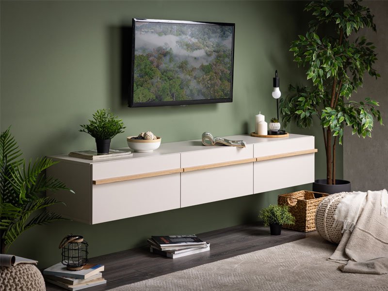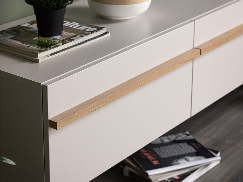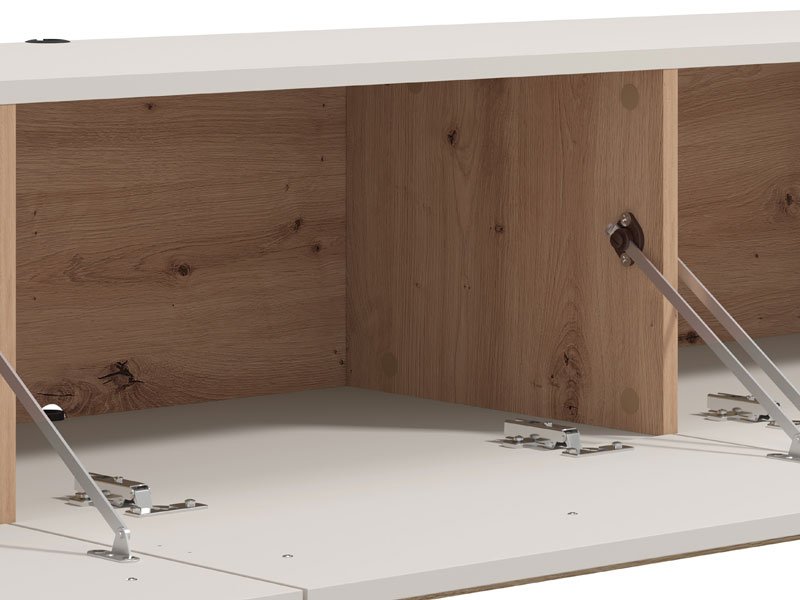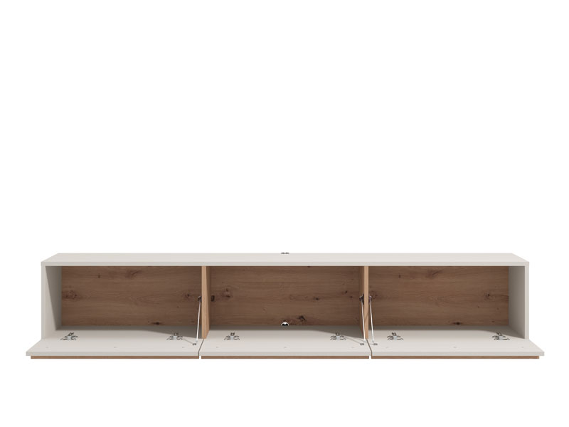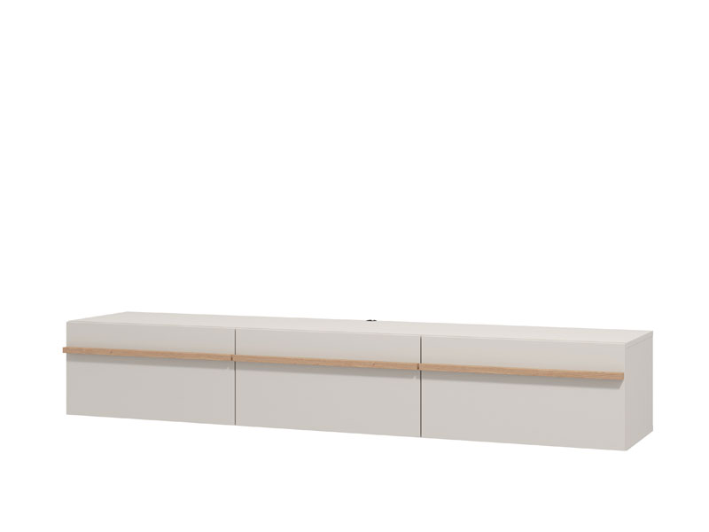 TV shelf ARLES TV 192 3K3V in a combination of cashmere decor and artisan oak foil, is intended for furnishing the living room and is characterized by a contemporary design, as well as a prominent aesthetic note. It is a functional piece of furniture that will ideally fit into the ambience of modern homes. The usable space consists of three closed partitions. The TV shelf ARLES TV 192 3K3V is a model of a console TV shelf, which is one of the most common trends in panel furniture design.