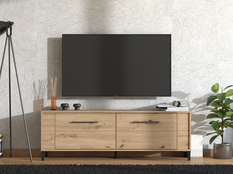 The DURHAM TV 157 2K2V TV shelf, in an artisan oak finish, is an appealing solution for modern interior design lovers. Its well-organized usable storage space consists of two closed compartments, making it a functional piece of furniture that seamlessly fits into any setting, both in terms of design and wood finish.
