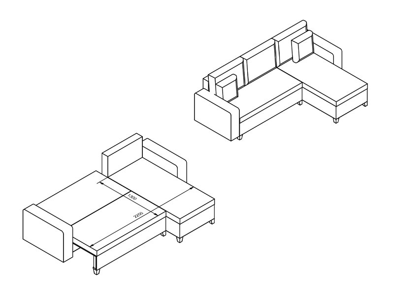 Corner sofa bed MOET is characterized by spaciousness and modern design lines, ideal for a modern living area. With a practical backrest tilting system, it is easily transformed into a bed with a sleeping surface measuring 130x225 cm. It is made of a sponge, providing a good level of comfort in everyday use. Corner sofa bed also has a storage box, convenient for storing linens and other things."