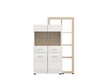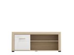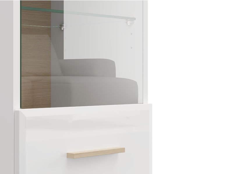 Entertainment center CARLOW 1K VS1 96 is an elegant element for furnishing the living room, which combines functionality and modern aesthetic expression. The combination of opaque white decor, white high gloss foil and light port oak brings a sense of elegance, warmth and visual balance to the space, with clearly defined lines and a modern character. The semi-glazed part contributes to the attractive appearance of the element and allows the highlighting of decorative objects, while the closed segment provides practical storage space. The entertainment center is part of the living room design elements system CARLOW and is a harmonious addition to the overall design concept. There is an option to install additional LED lighting.