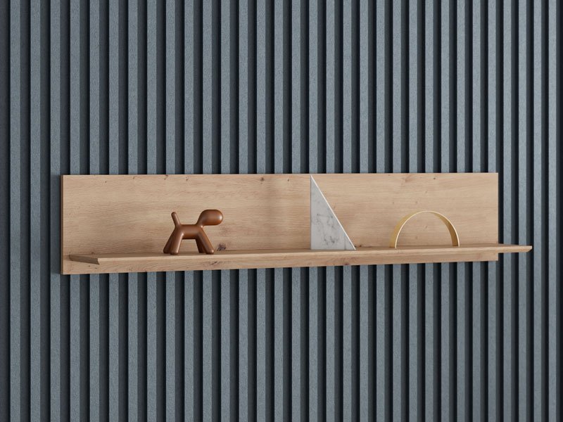 Wall shelf LAMBETH ZP in artisan oak decor brings warmth and rustic character to the space, thanks to a special finish in the form of stripes embossed on the fronts. It provides a practical and organized space for storing books, decorative items or trinkets, thus contributing to the functionality and style harmony of the living room. Wall shelf LAMBETH ZP is part of the system of elements LAMBETH, which is characterized by aesthetically pronounced style and functionality.