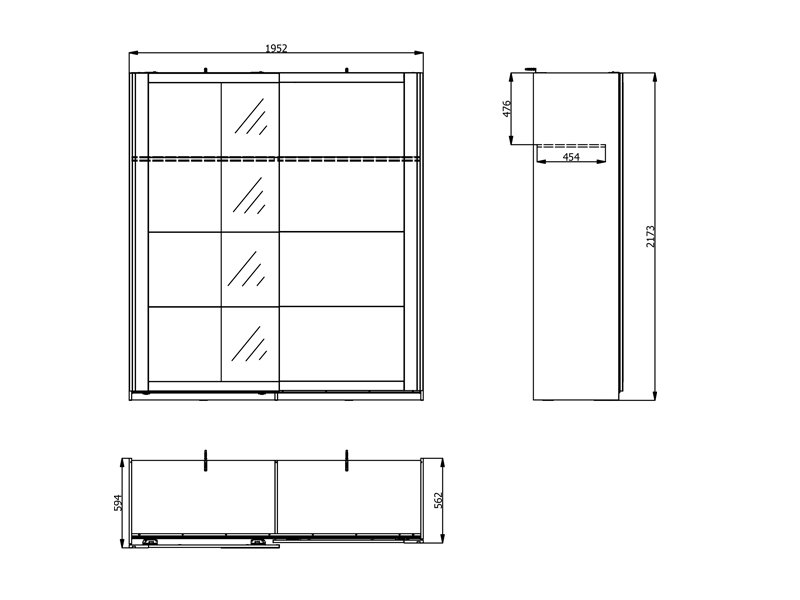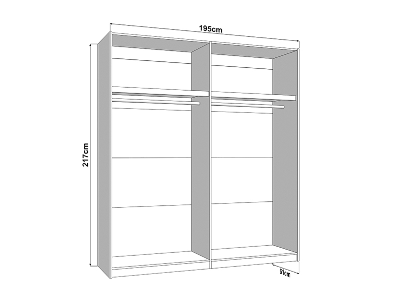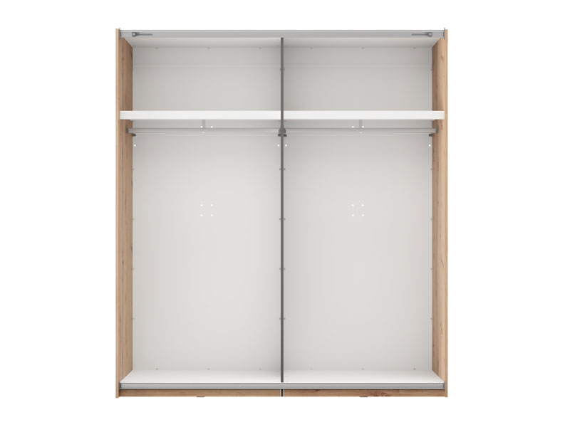 The usable space of the Wardrobe consists of two wardrobe rails, and there is a possibility of subsequent addition of shelves, which improves the overview and organization of the wardrobe. Also, it is possible to install a sliding mechanism retarder for silent use, as well as to add lighting, which improves the overview and visual experience of the interior space.