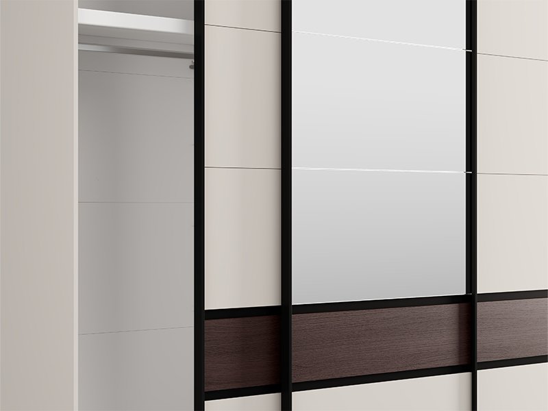 wardrobe offers the possibility of subsequent addition of a set of shelves for wardrobe or the addition of verticals with shelves and two drawers, as well as the addition of only a shelf with a vertical, which allows individual organization of the interior space and maximum functionality. In addition, there is the option of installing a sliding mechanism retarder and a frame for the wardrobe, as well as adding lighting, which enhances the convenience and visual experience of the element.