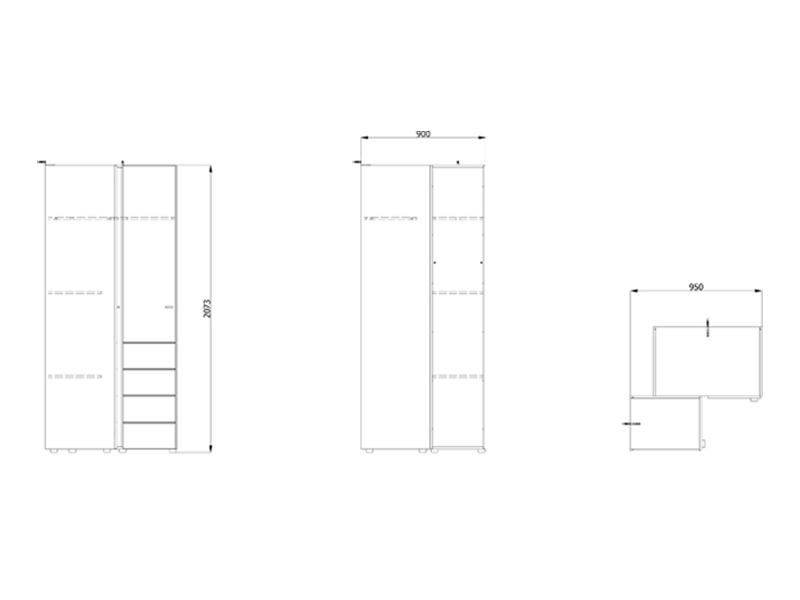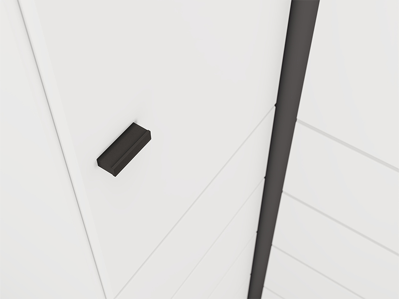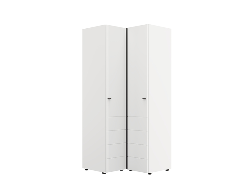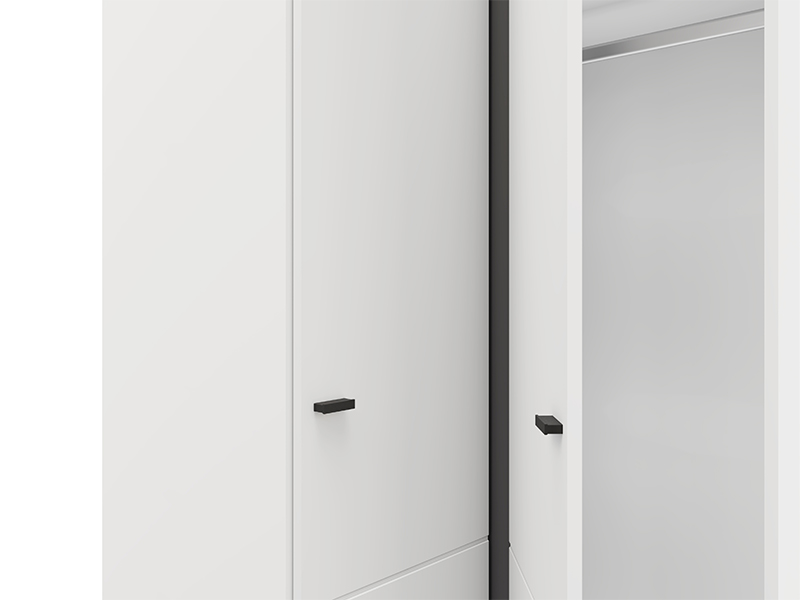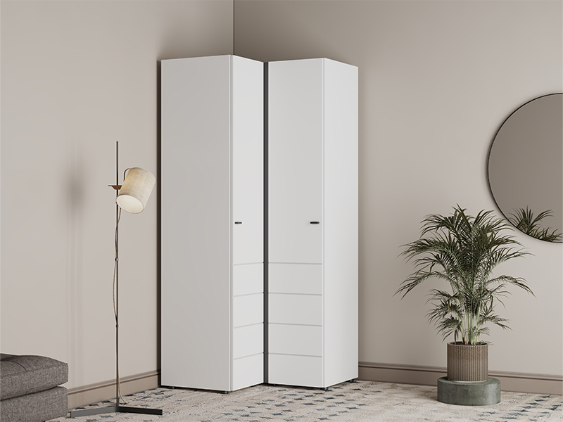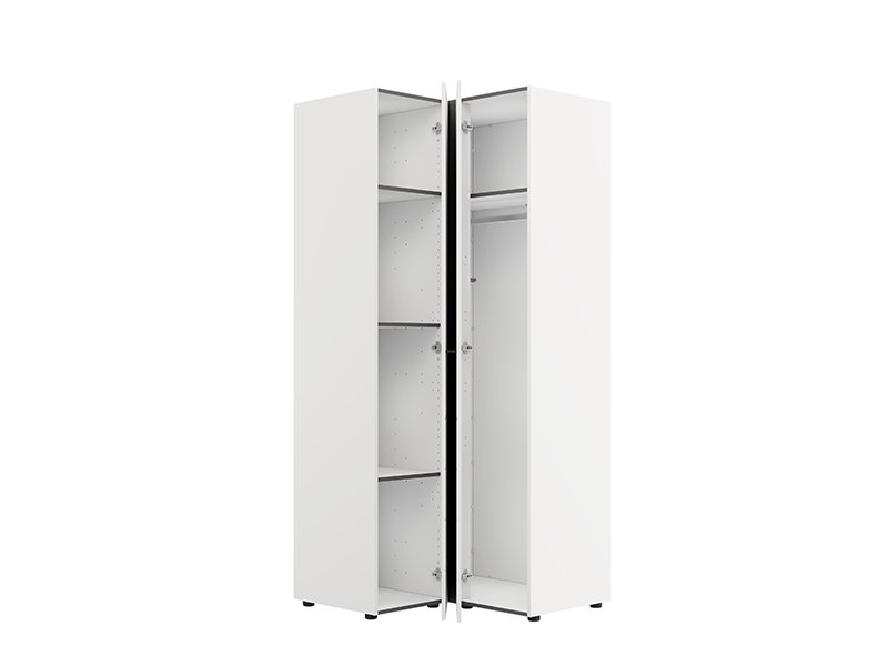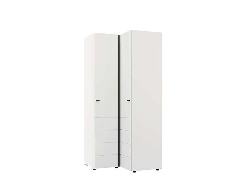 Wardrobe NEVIS UG h207, in an opaque white decor, is a functional and modern solution for full use of space. The angular design allows optimal organization of the wardrobe and accessories – one side of the cupboard contains a wardrobe rail, while the other has partitions, providing a practical and clear usable space. Wardrobe NEVIS UG h207 belongs to the NEVIS collection and can be combined with other models from the same line.
