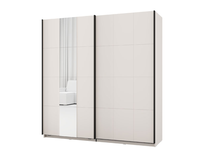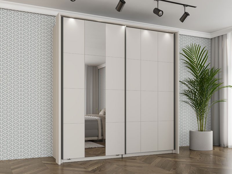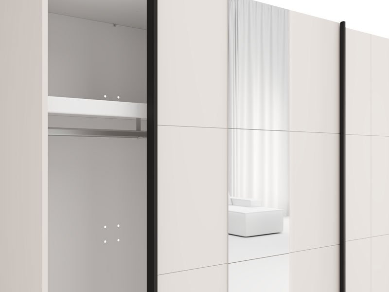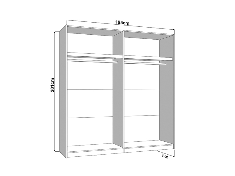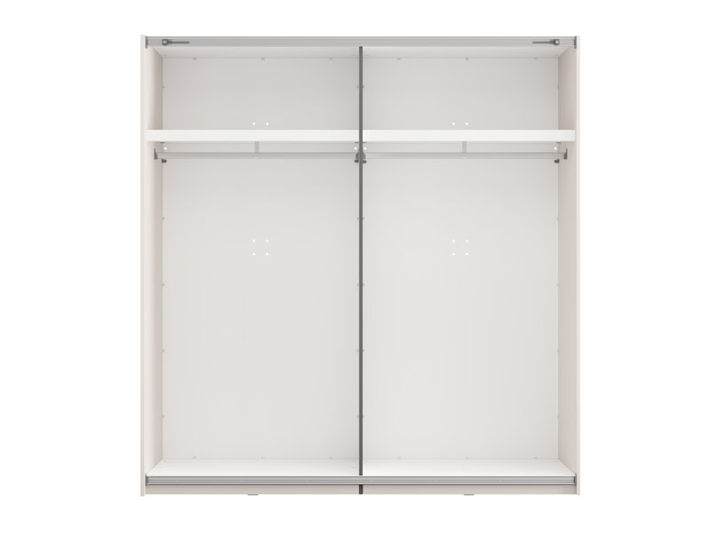 Wardrobe SALAMIS 200 OG h205 offers the possibility of installing additional shelves for better space organization, as well as the option of a sliding mechanism retarder for quiet and comfortable use. There is also the possibility of adding lighting, which improves the functionality and visual experience of wardrobe. Wardrobe SALAMIS 200 OG h205 is part of the eponymous bedroom design collection SALAMIS, a modern and clean design form.