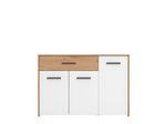 The VARADERO 3K1O wardrobe, in the decor of artisan oak and opaque white, is a part of the eponymous kids room elements collection. It has a very functional usable space with a system of shelves, as well as a part with a wardrobe bar and a shelf above it. An additional aesthetic benefit is the mirror in the central part.