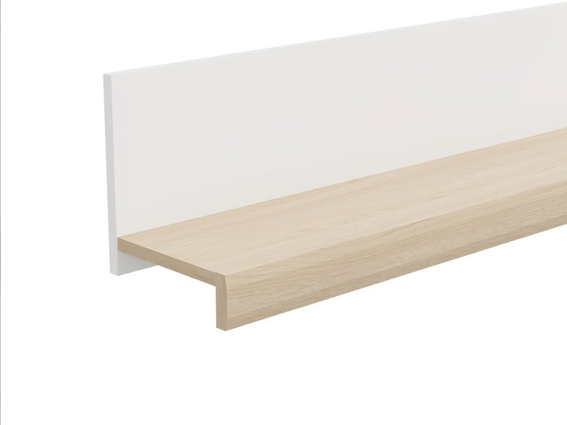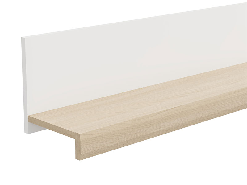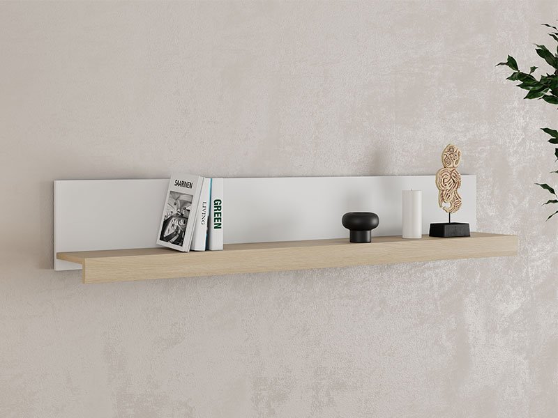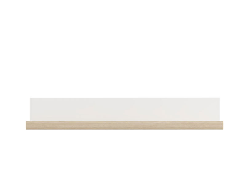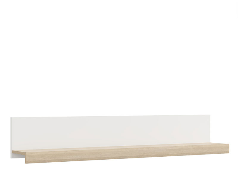 Wall shelf CARLOW ZP is a simple and functional element for equipping the living room. It is made in a combination of opaque white decor, light port oak and light port oak foil, which contributes to the modern and bright appearance of the space. It is suitable for displaying decorative objects or books and blends harmoniously with other elements of the system of elements CARLOW.